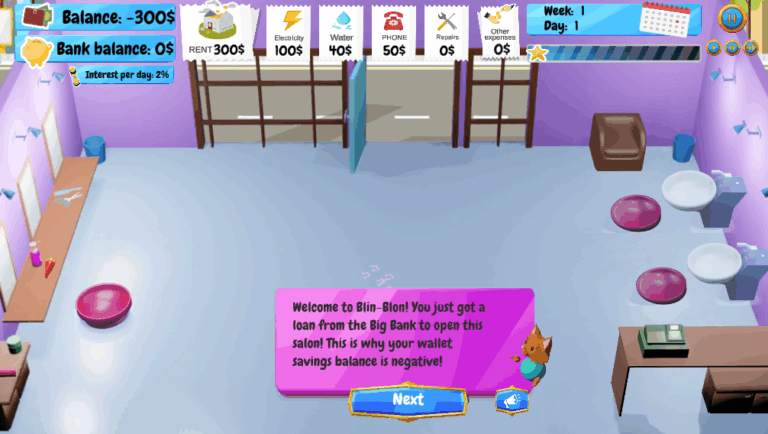 Blin-Blon Salon is a curriculum-aligned educational game on the Legends of Learning platform (often used by teachers in class assignments). It’s designed to help upper elementary students (grades ~3-5) explore personal financial literacy and basic business skills in a fun, interactive setting. In the game, players manage a quirky salon full of fuzzy characters, learn to allocate money, track expenses, and strive to make a profit while competing with a rival business.