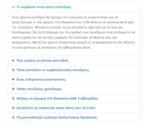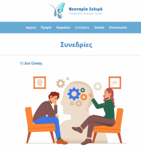 TherapyOnline.gr is the personal professional website of ΝεκταρίαΣελιμά, a certified Mental Health Counselor (Gestalt). It presents her profile and qualifications, explains the Gestalt approach and the counselling framework, and provides clear guidance on how therapy works through a detailed Sessions (Συνεδρίες) section covering in-person and online sessions, what happens in the first session, confidentiality, frequency, and practical FAQs (including session cost). The site also includes straightforward contact details and an accessibility toolbar (text size, contrast, readable font) to improve usability for all visitors.